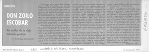 Don Zoilo Escobar [artículo] / Enrique Melcherts. Las Últimas Noticias (Diario : Santiago, Chile)-- mayo 25, 1974, p. 6. .