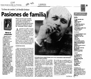Pasiones de familia [artículo] / Lina Meruane. La Tercera. -- abr. 5, 1996, p. 17 (suplemento) retr. .