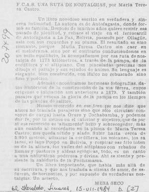 "F.C.A.B., una ruta de nostalgia" [artículo] / Mesa Seco. El Heraldo. -- jul. 15, 1984, p. 2. .