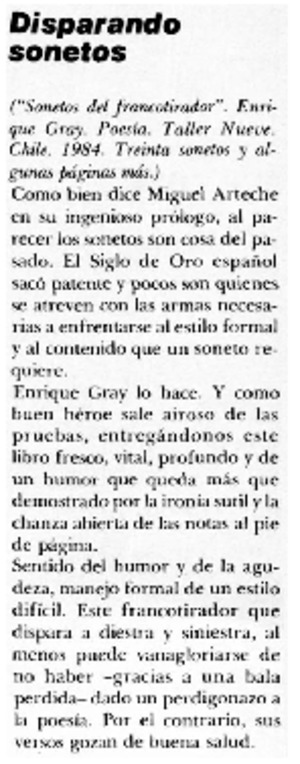 Autores chilenos - Gray, Enrique - Sonetos del francotirador