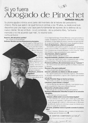 Si fuera abogado de Pinochet [artículo] Pauline Kantor El Mercurio (Santiago) mar. 25, 2000, p. 70 (suplemento) retr. .
