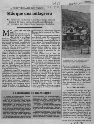 Más que una milagrera [artículo] / Alejandra Miranda. Análisis. -- no. 258 (dic. 19, 1988) p. 23-24 retr. .