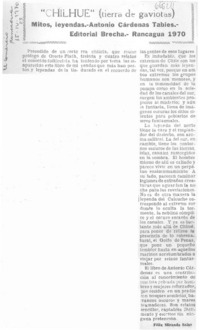 Chilhué (tierra de gaviotas) [artículo] / Félix Miranda Salas. El Comercio (Rancagua, Chile)-- abr. 15, 1970, p. 3. .