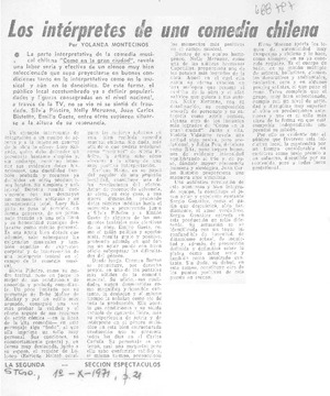 Los intérpretes de una comedia chilena [artículo] / Yolanda Montecinos. La Segunda (Diario : Santiago, Chile)-- oct. 1, 1971, p. 21. .