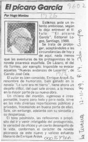 El pícaro García [artículo] / Hugo Montes. La Tercera. -- feb. 12, 1989, p. 14 (segundo cuerpo) retr. .