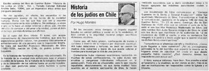 Historia de los judíos en Chile [artículo] / Hugo Montes. La Tercera de La Hora (Santiago, Chile)-- mar. 31, 1985, p. 6. retr. .