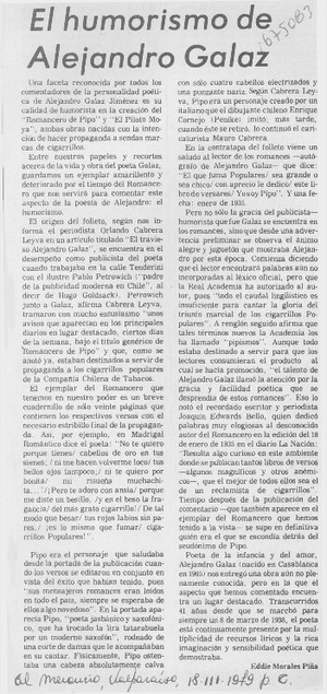El humorismo de Alejandro Galaz [artículo] / Eddie Morales Piña El Mercurio (Diario : Valparaíso, Chile)-- mar. 18, 1979, p. C. .