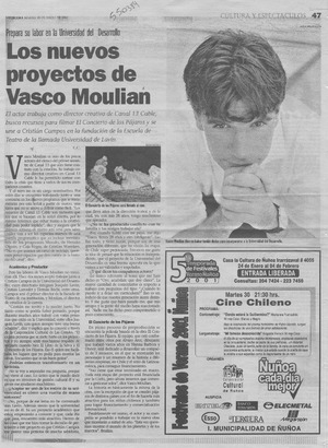 Los nuevos proyectos de Vasco Moulian [artículo] E. C. La Tercera ene. 30, 2001, p. 47 retr. .