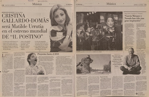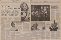 Cristina Gallardo-Domâs será Matilde Urrutia en el estreno mundial de "Il Postino" [artículo] / Juan Antonio Muñoz H. El Mercurio (Diario : Santiago, Chile)-- mar. 18, 2007, p. E10-E11. .