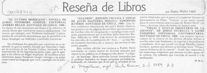 Reseña de libros [artículo] / Marino Muñoz Lagos. El Magallanes. -- feb. 5, 1989, p. 3 (suplemento) .