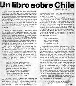 Un libro sobre Chile [artículo] / Marino Muñoz Lagos. El Magallanes (Punta Arenas, Chile)-- abr. 8, 1979, p. 3. .