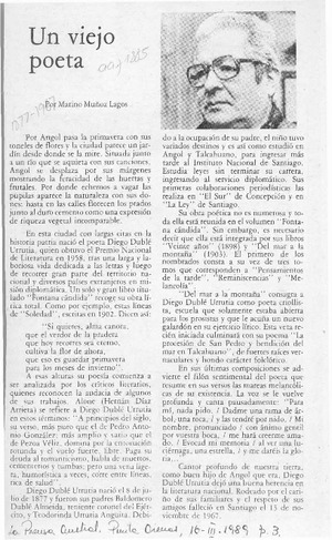 Un viejo poeta [artículo] / Marino Muñoz Lagos. La Prensa Austral. -- mar. 16, 1989, p. 3. retr. .