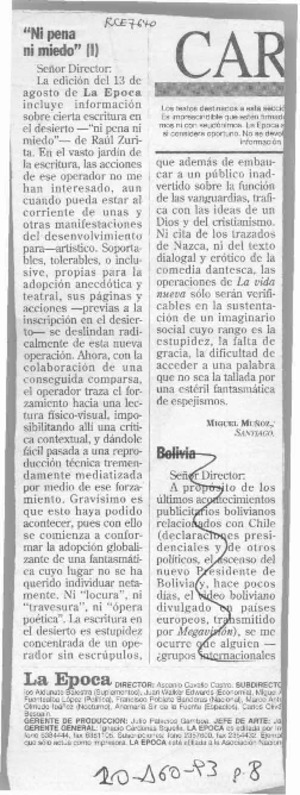 "Ni pena ni miedo" II [artículo] / Miguel Muñoz. La Epoca. -- ago. 20, 1993, p. 8. .