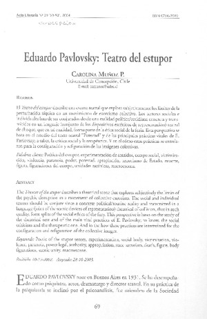 Eduardo Pavlovsky: Teatro del estupor [artículo]/ Carolina Muñoz P. Acta Literaria (revista : Concepción, Chile)-- no. 29 (2004) p. 69-92 .