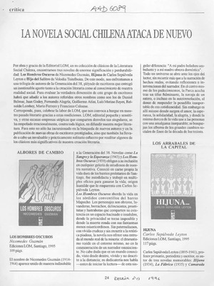 La novela social chilena ataca de nuevo [artículo] / Diego Muñoz Valenzuela. Reseña. -- no. 17 (1996) p. 24-25 il. .