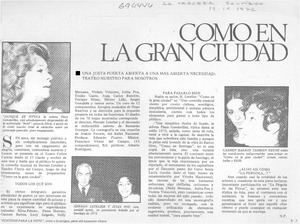 Como en la gran ciudad [artículo] / N. F. La Tercera (Santiago, Chile)-- sept. 19, 1971, p. 3 (suplemento) retr. .