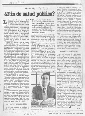 Fin de salud pública? [artículo] / N. S. M. Análisis. -- no. 204 (dic. 7, 1987) p. 25 retr. .