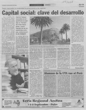 Capital social, clave del desarrollo [artículo] Francisco Olivares La Estrella ago. 18, 2000, p. A11 retr. .