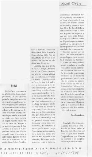 Couve [artículo] / Carlos Ormeño Arcilla. Qué Pasa. -- no. 1409 (abr. 11, 1998) p. 96 .