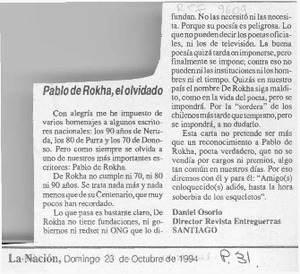 Pablo de Rokha, el olvidado [artículo] / Daniel Osorio. La Nación. -- oct. 23, 1994, p. 31 .