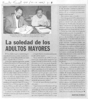 La soledad de los adultos mayores [artículo] / Jean Paul Oyarzún. Punto final (Revista, Chile)-- no. 624 (sept. 22, 2006) p. 8. .
