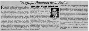 Geografía humana de la región [artículo] / Lorenzo Palacios. El Llanquihue (diario : Puerto Montt, Chile)-- jul. 18, 2003, p. A4. retr. .