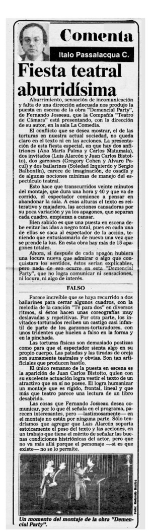 Fiesta teatral aburridísima [artículo] Italo Passalacqua C.