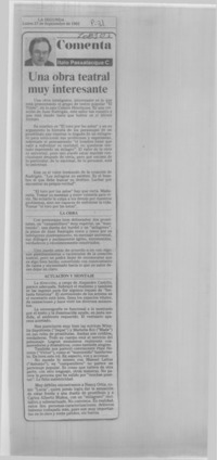 Una obra teatral muy interesante [artículo] Italo Passalacqua C.
