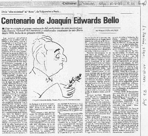 Centenario de Joaquín Edwards Bello [artículo] / Manuel Peña Muñoz. La Nación (diario : Santiago, Chile)-- mayo 10, 1987, p. 7. .