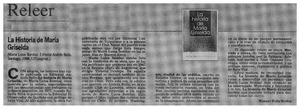 La historia de María Griselda [artículo] / Manuel Peña Muñoz. El Mercurio (Santiago). -- nov. 13, 1995, p. 8 (suplemento) il. .