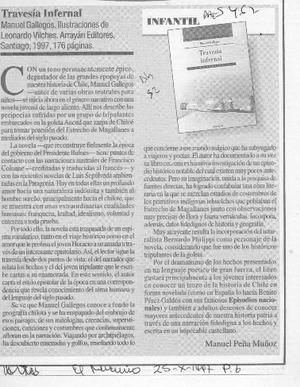 Travesía infernal [artículo] / Manuel Peña Muñoz. El Mercurio (Santiago). -- oct. 25, 1997, p. 6 (suplemento) il. .