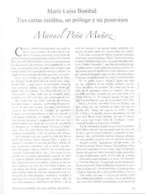 Tres cartas inéditas, un prólogo y un posavasos [artículo] / Manuel Peña Muñoz. Herencia (revista : Santiago, Chile)-- no. 2 (primavera 2010) p. 21-34. .