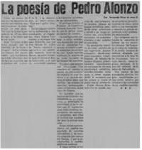 La poesía de Pedro Alonzo [artículo] / Fernando Pérez de Arce B. La Voz de Colchagua (San Fernando, Chile)-- mayo 12, 1970, p. 4. .