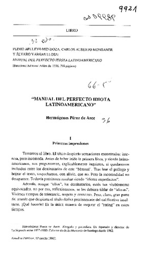 "Manual del perfecto idiota latinoamericano" [artículo] / Hermógenes Pérez de Arce. Estudios Públicos. -- no. 62 (otoño 1996) p. 331-335 .