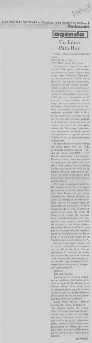 Un libro de hoy [artículo] / Pickwick. Las Últimas Noticias (Diario : Santiago, Chile)-- oct. 14, 1979, p. 5. .