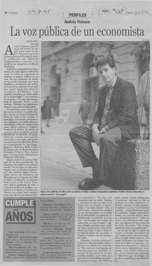 La voz pública de un economista [artículo] / Ximena Poo. La Epoca. -- ago. 29, 1995, p. 36 retr. .