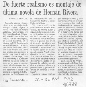 De fuerte realismo es montaje de última novela de Hernán Rivera [artículo] Leopoldo Pulgar I.