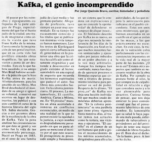 Kafka, el genio incomprendido [artículo] / Jorge Queirolo Bravo. La Tribuna (Los Angeles, Chile)-- ene. 31, 2003, p. 2. .