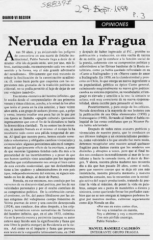 Neruda en la Fragua [artículo] Manuel Ramírez Calderón VI Región sept. 29, 1999, p. 3 .