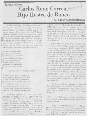 Carlos René Correa, Hijo Ilustre de Rauco [artículo] / Oscar Ramírez Merino. Las Últimas Noticias (Diario : Santiago, Chile)-- sept. 10, 1979, p. 5. .