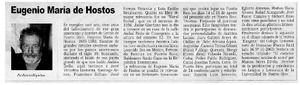 Eugenio María de Hostos [artículo] / Ramón Riquelme. La Discusión (Chillán, Chile)-- jul. 8, 2003, p. 2. retr. .