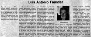 Luis Antonio Faúndez [artículo] / Ramón Riquelme. La Discusión (Diario : Chillán, Chile)-- ago. 7, 2003, p. 2. retr. .