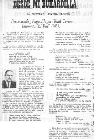 Persecución y fuga, elegía [artículo] / Gustavo Rivera Flores. El Día (diario : La Serena, Chile)-- jul. 30, 1977, p. 3. retr. .