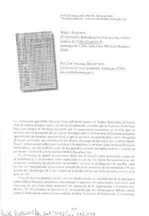Autores alemanes - Autores chilenos - Benjamin, Walter - Narrador - Oyarzún Robles, Pablo