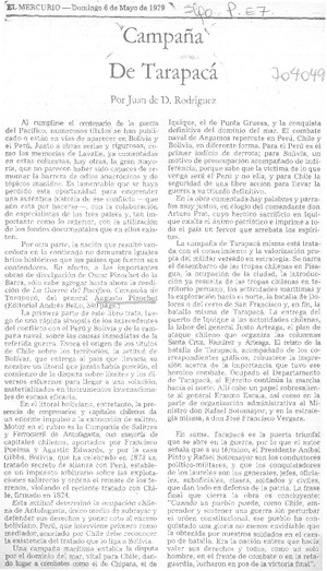 Campaña de Tarapacá [artículo] / Juan de D. Rodríguez. El Mercurio (Diario : Santiago, Chile)-- mayo 6, 1979, p. E7. .