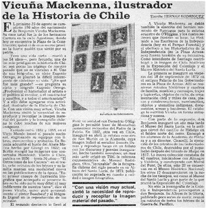 Vicuña Mackenna, ilustrador de la historia de Chile [artículo] / Hernán Rodríguez. La Segunda (Diario : Santiago, Chile)-- ago. 19, 1981, p. 8. .