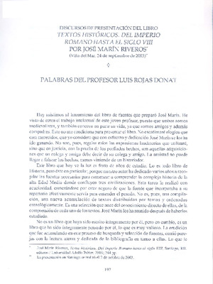 Textos históricos del Imperio Romano hasta el siglo VII [artículo] / Luis Rojas Donat. Revista de Filosofía, Historia y Letras (Santiago, Chile)-- no. 6, vol 2 (2003) p. 197-205. .