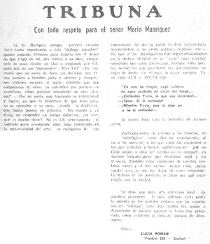 Tribuna [artículo] / Lucía Román. Atacama (Copiapó, Chile)-- abr. 26, 1971, p. 4. .