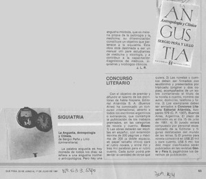 La angustía, antropología y clínica [artículo] / José Luis Rosasco. Qué Pasa (Revista : Santiago, Chile)-- no. 533 (jun. 25, 1981) p. 63. il. .