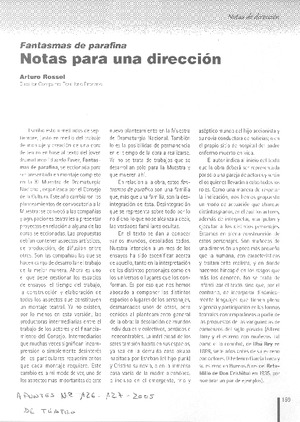 Fantasmas de parafina notas para una dirección. [artículo] Arturo Rossel Apuntes de teatro (Revista : Santiago, Chile) no. 126-127 (2005) p. 159-160 .